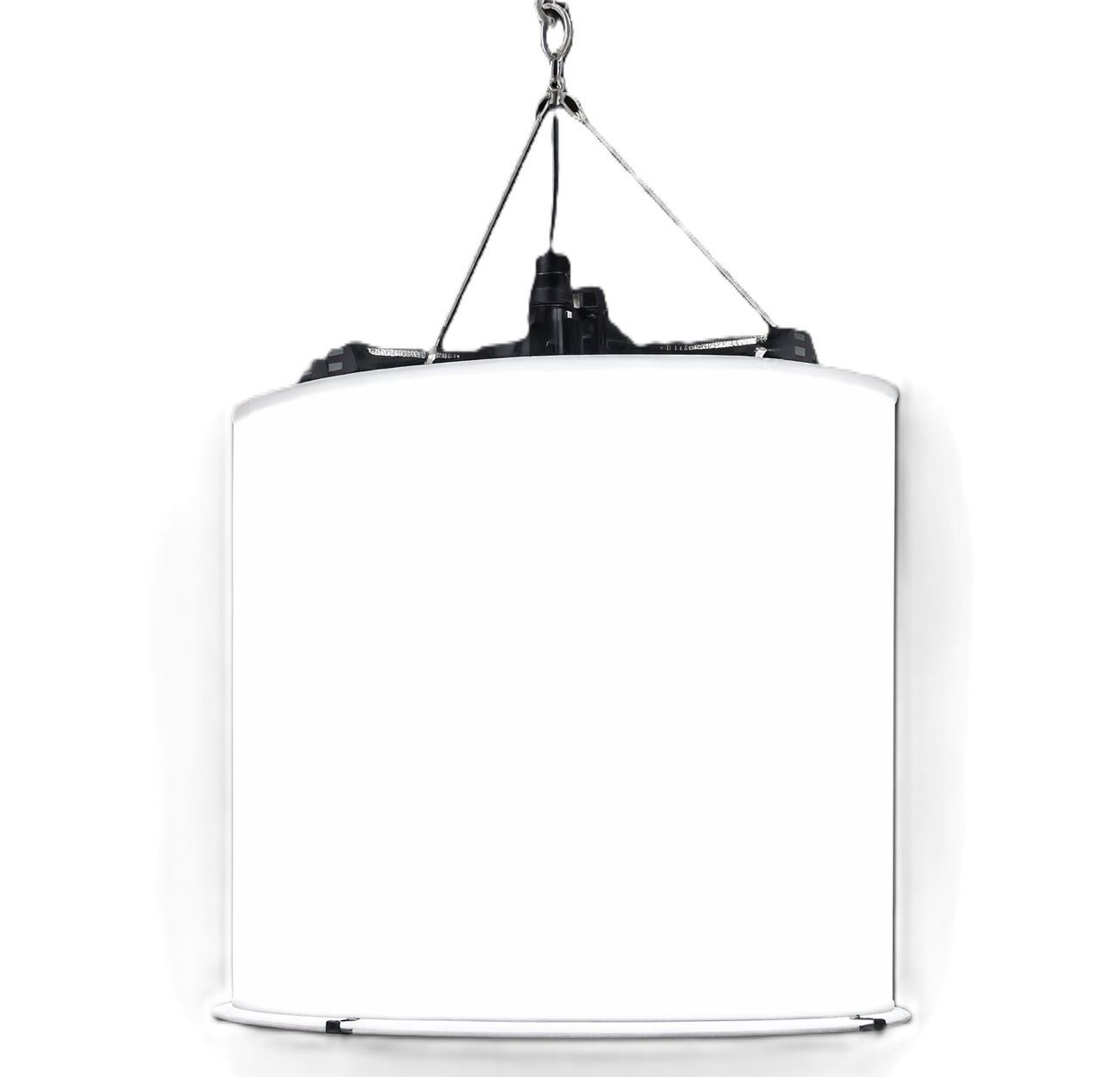 The perfect combination of high-intensity output and dense diffuser material creates a broad pool of light ideal for studios with high ceilings. Delivering an astonishing 3,700 fc when bounced into Hi-Lite diffuser material (skirt and target), the VELVET Spacelite produces powerful, soft illumination that descends evenly to cover large areas. Its exceptional efficiency—balancing power draw and output—makes it the ultimate lantern for tall stages, AND the entire fixture can be installed by a single operator.